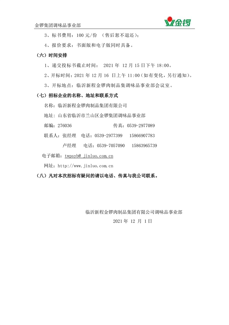 調(diào)味品事業(yè)部2022年運輸招標(biāo)公告