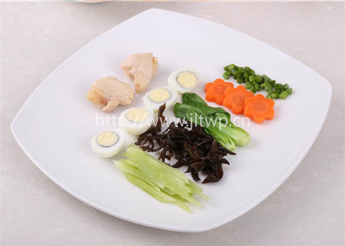 1.雞蛋煮熟切半,胡蘿卜切片,小油菜、木耳燙熟,雞塊煮熟后備用;